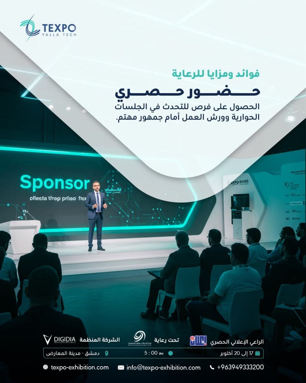 وتمثل هذه الفترة بداية عهد جديد مع فرص واعدة في مجالات التكنولوجيا والتجارة، ما يجعل المعرض فرصة لا تعوض للمستثمرين والمشاركين لدخول مجال حيوي في فترة يشهد فيها السوق المحلي طلباً متزايداً على كل أنواع التكنولوجيا في مختلف القطاعات. مع تزايد الحاجة إلى الحلول التكنولوجية والرقمية، يزداد الطلب على المنتجات  ذات العلاقة بالتكنولوجيا في السوق السورية بمعدل غير مسبوق .