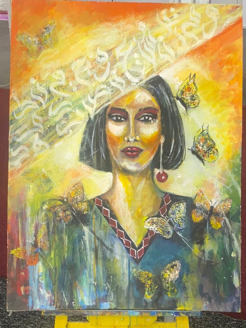 · مواضيع أعمالها: تتنوع لوحاتها بين تصوير الحارات الدمشقية والطبيعة والشخصيات الأدبية والفنية.