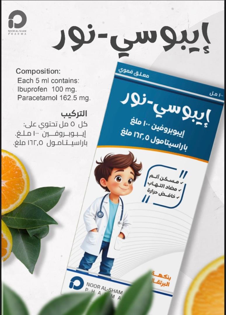 • إيبو بروفين نور — معلق فموي 100 مل (100 mg/5 ml).